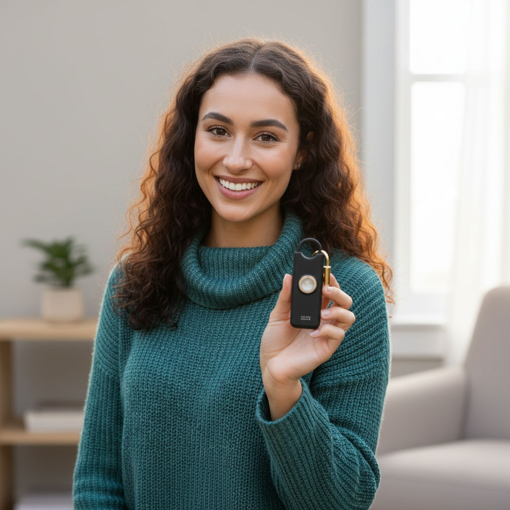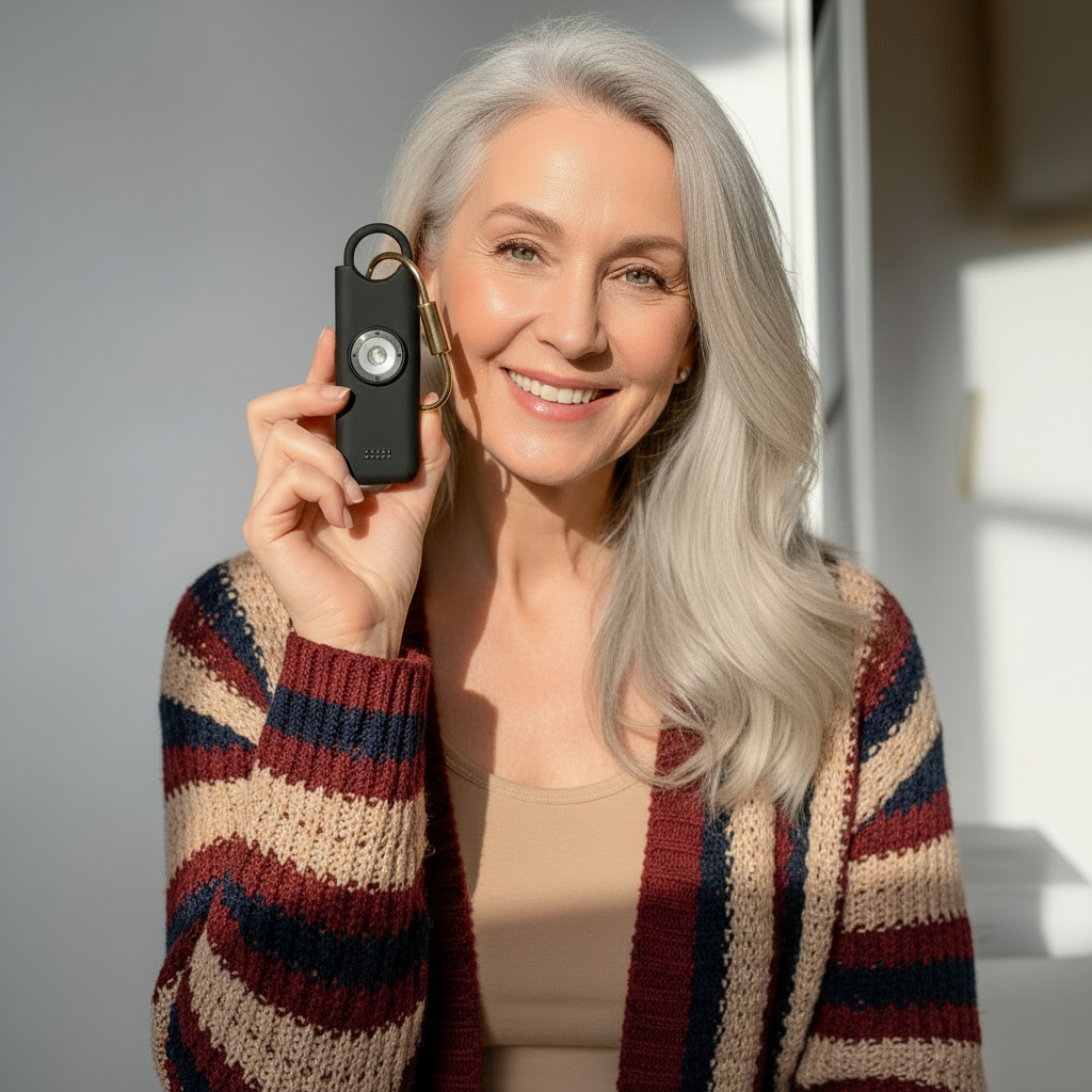 Ett litet, diskret överfallslarm som ger dig trygghet när du är ute själv.